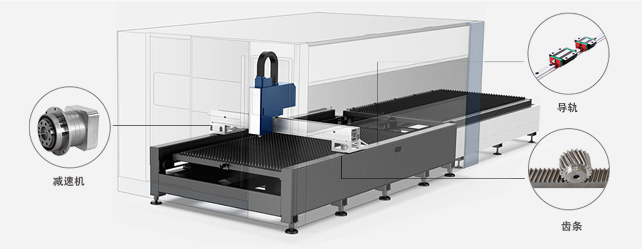 ■采用知名品牌臺灣YCC的斜齒齒條,臺灣上銀(HIWIN) 的30導軌,德國西門子的電子器件,使用日本松下或安川的驅動電機,保證了機器的工作精度。